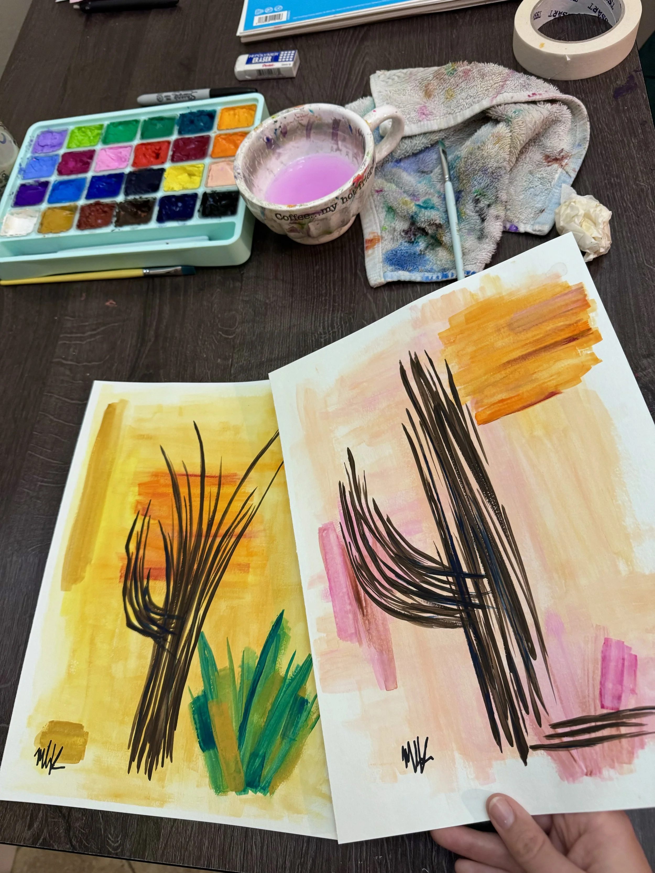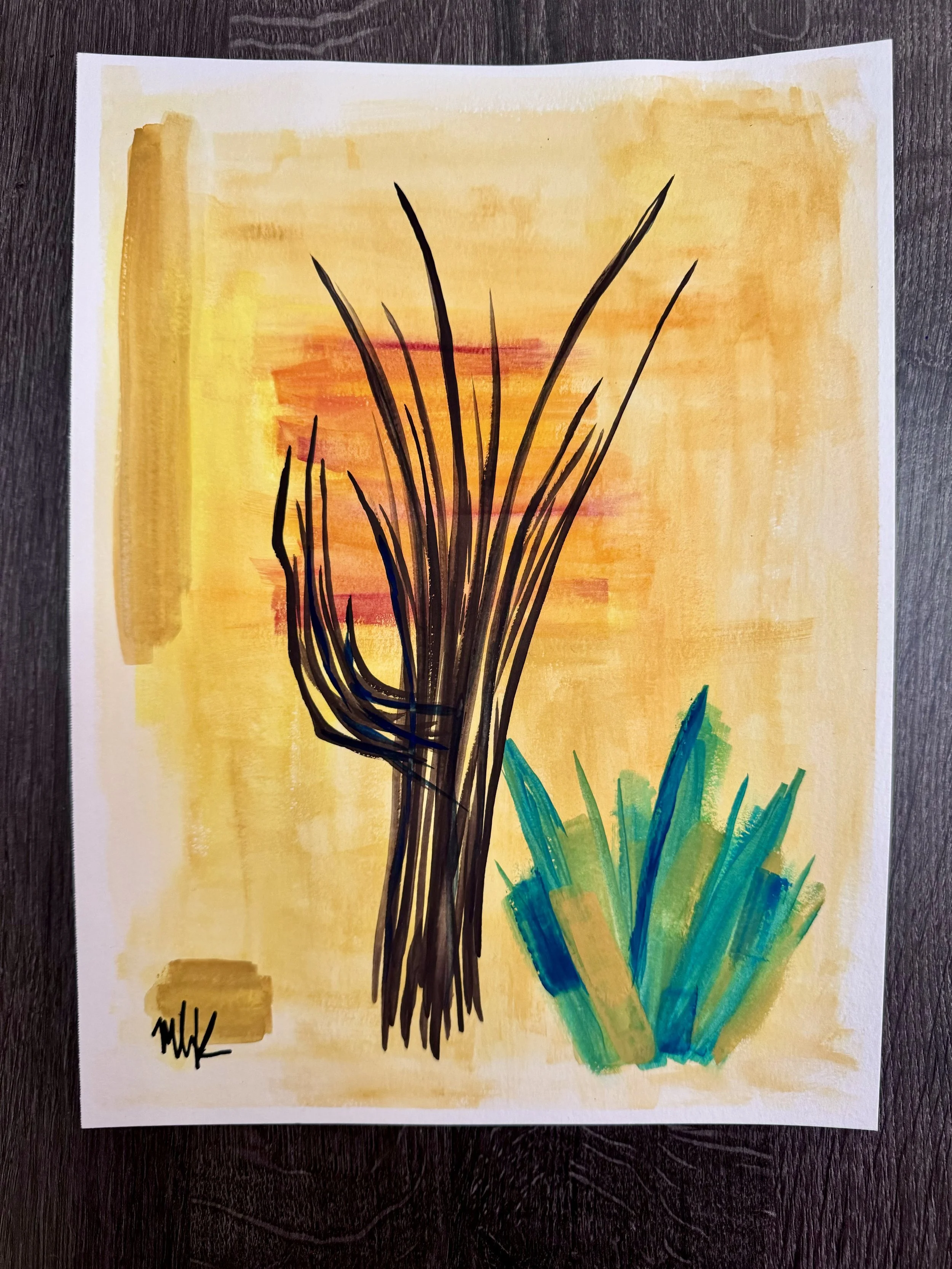 Discover the essence of the desert with our exquisite artistic print featuring desert flora, meticulously reproduced from an original gouache painting, by the artist, on high quality semi matte paper by a professional printing company out of New York.